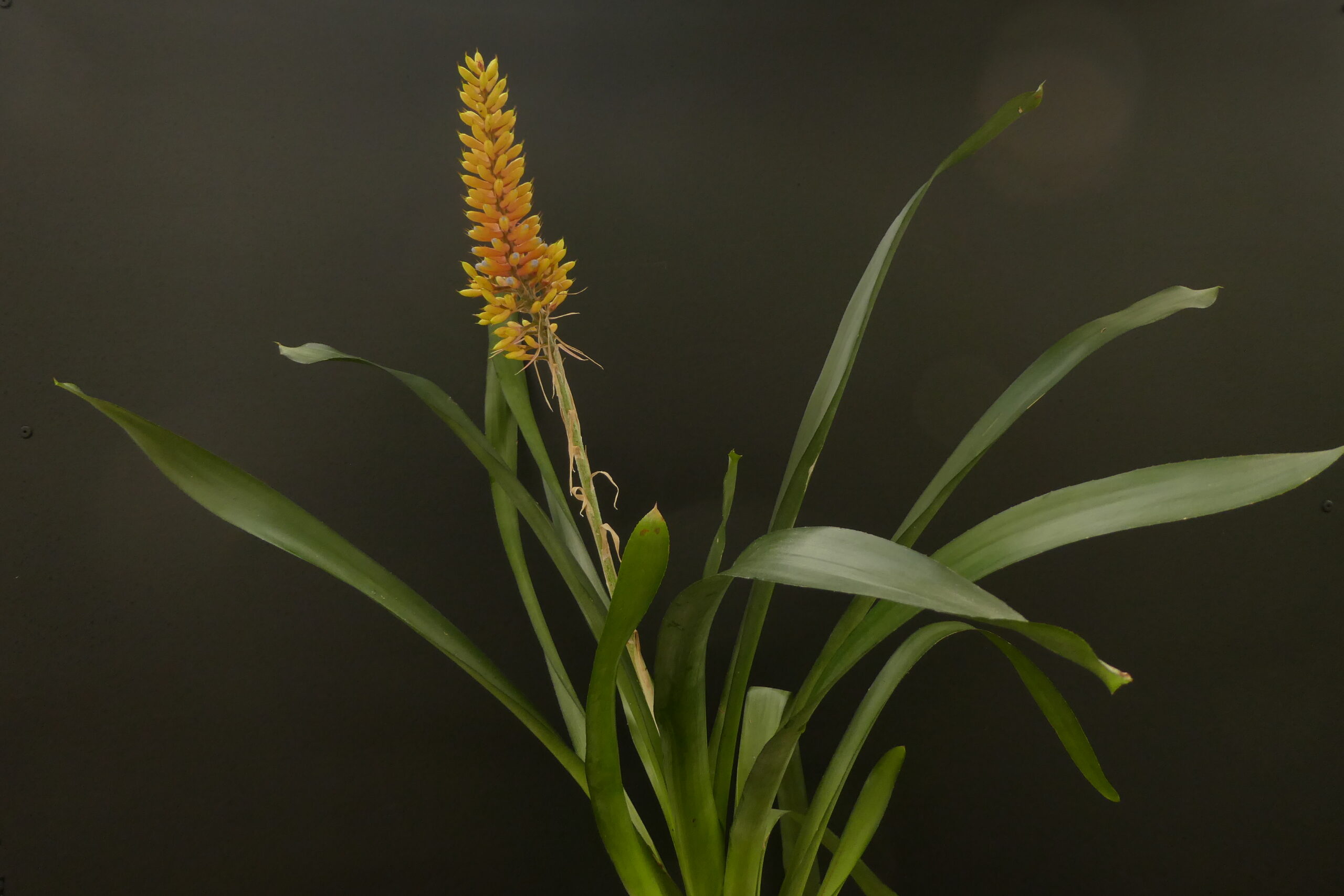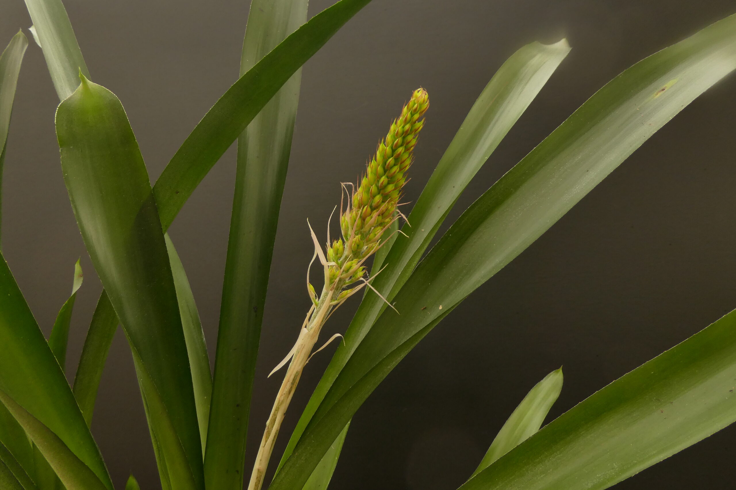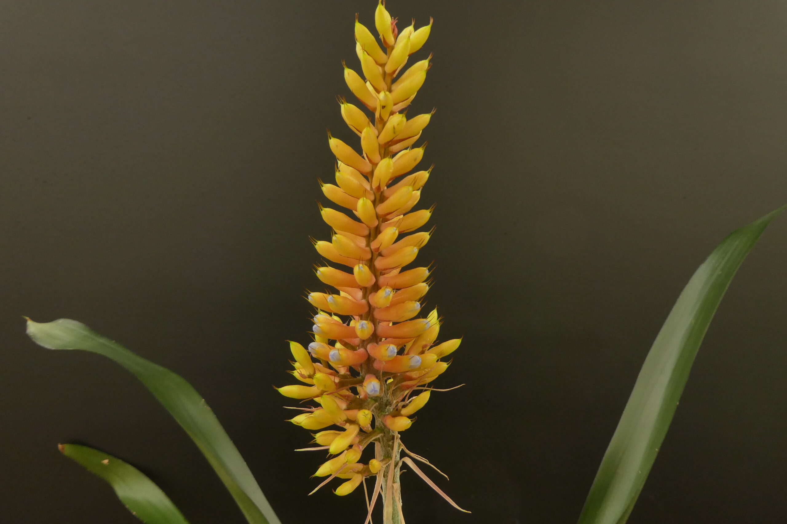 Aechmea gracilis , die bis auf 1000 m Höhe im atlantischen Regenwald Brasiliens beheimatet ist, gehört mit ihrer kerzenartigen Blütenrispe – wie z.B. auch A. gamosepala oder A. winkleri- zur Untergattung „Ortgiesia“.