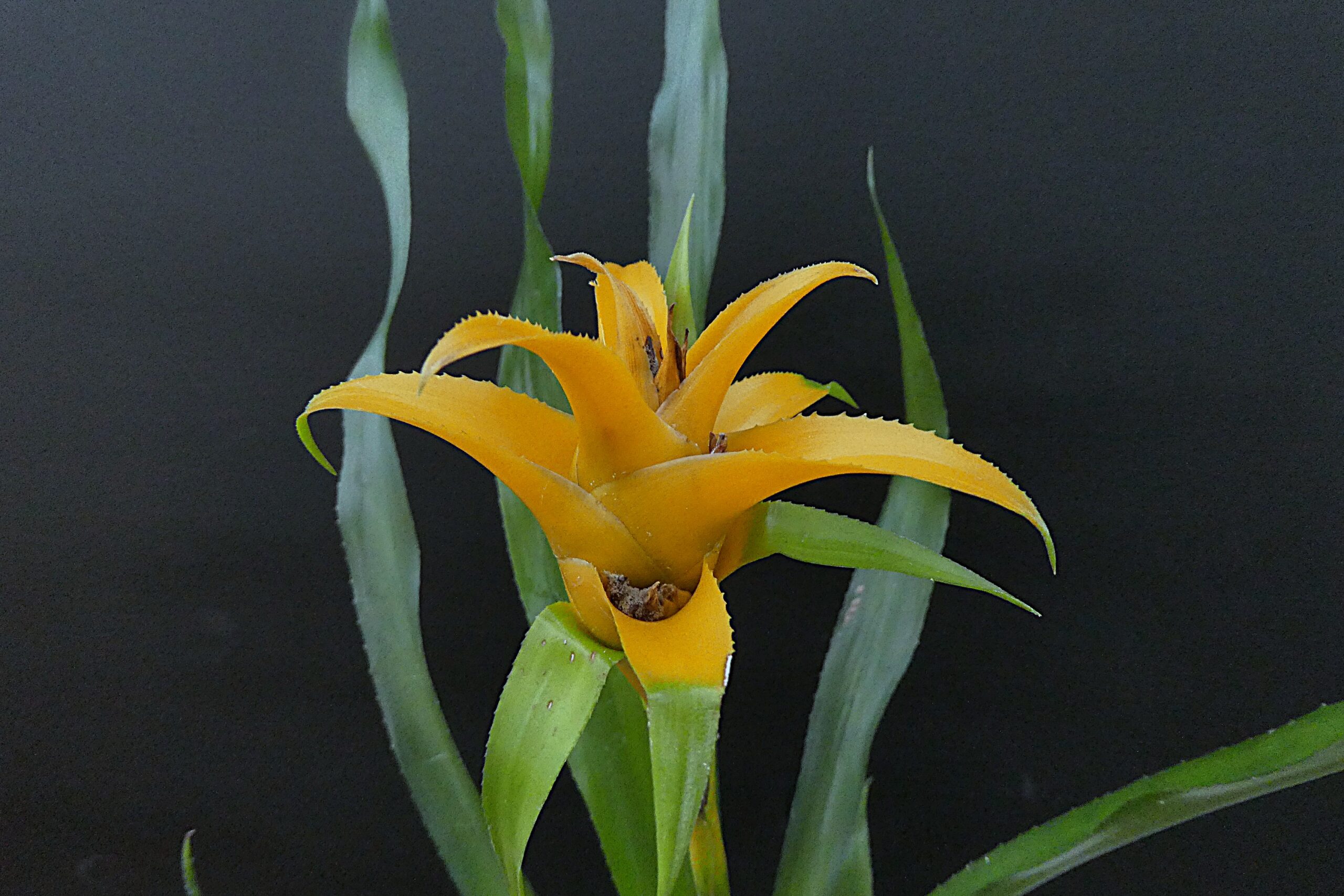 Die mittelgroße Bromelie ist recht anspruchslos und pflegeleicht, die gelben Brakteen behalten lange ihre Farbe.