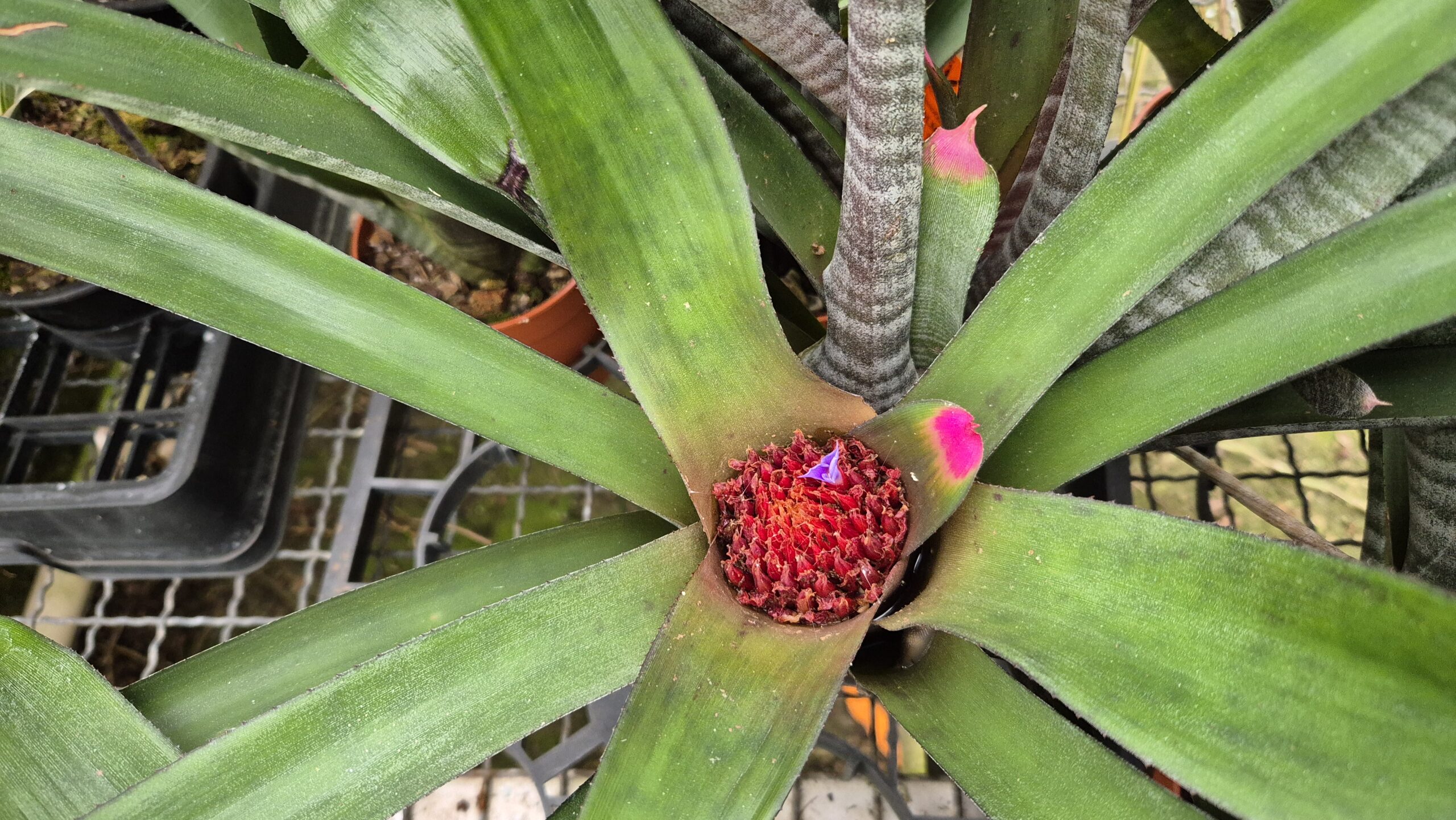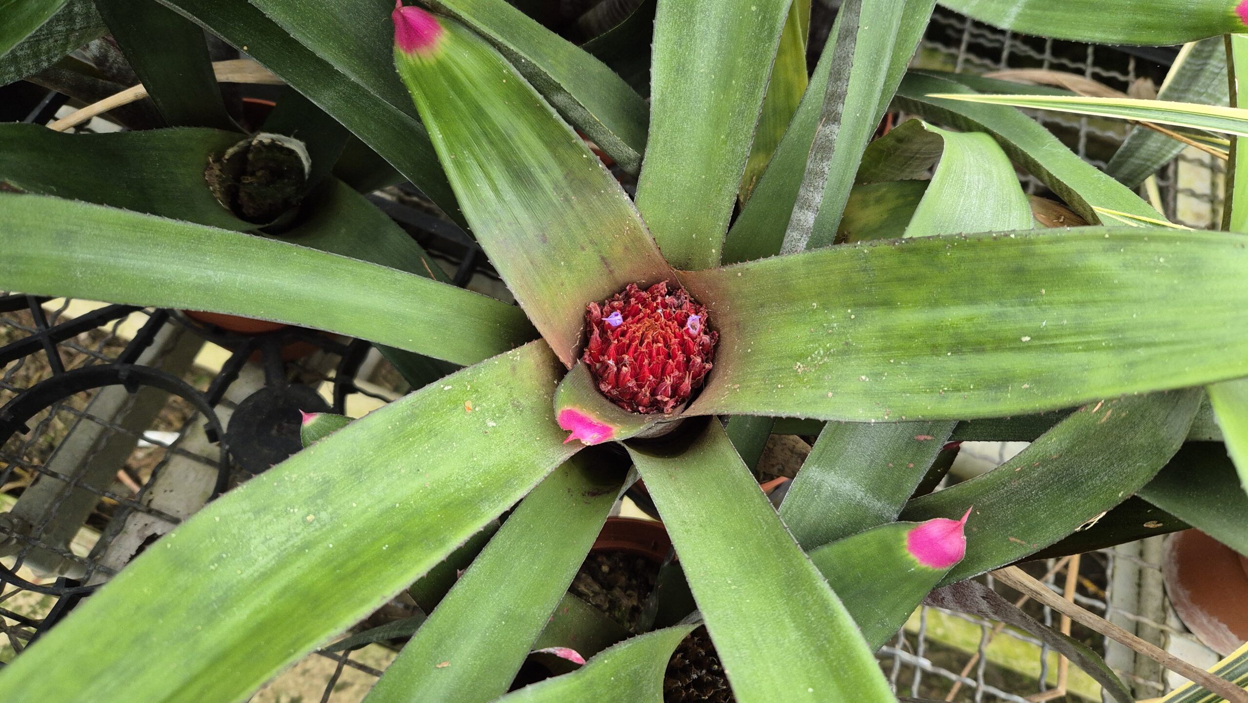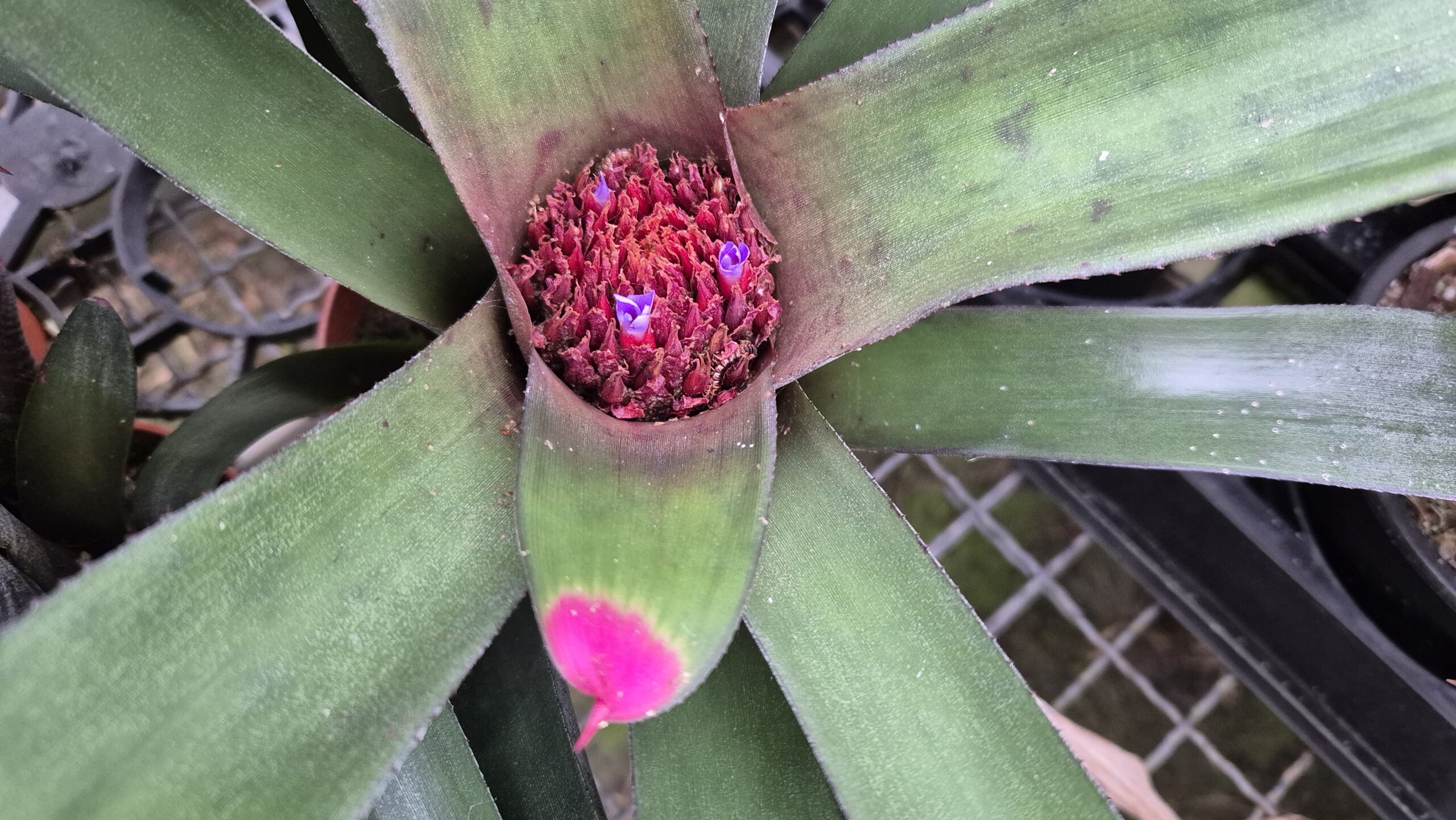 Die Besonderheit dieser Neoregelia sind ihre Blattspitzen, die leuchtend Pink gefärbt sind.