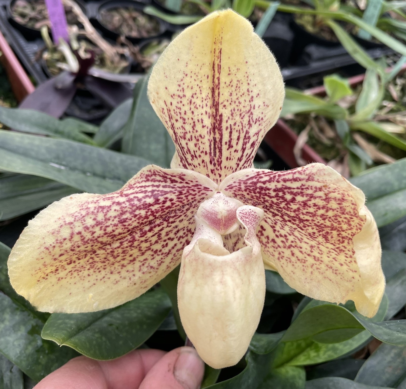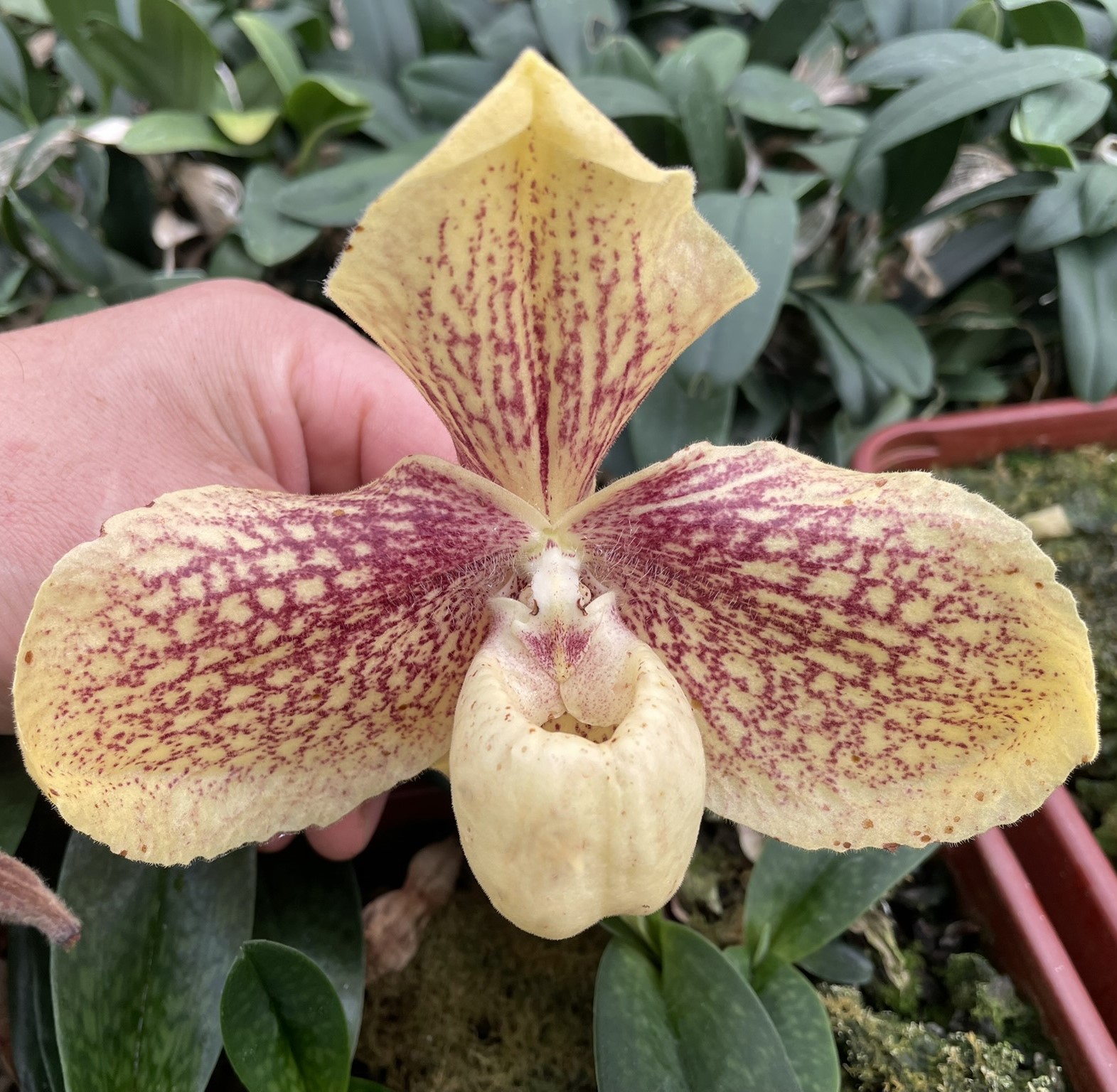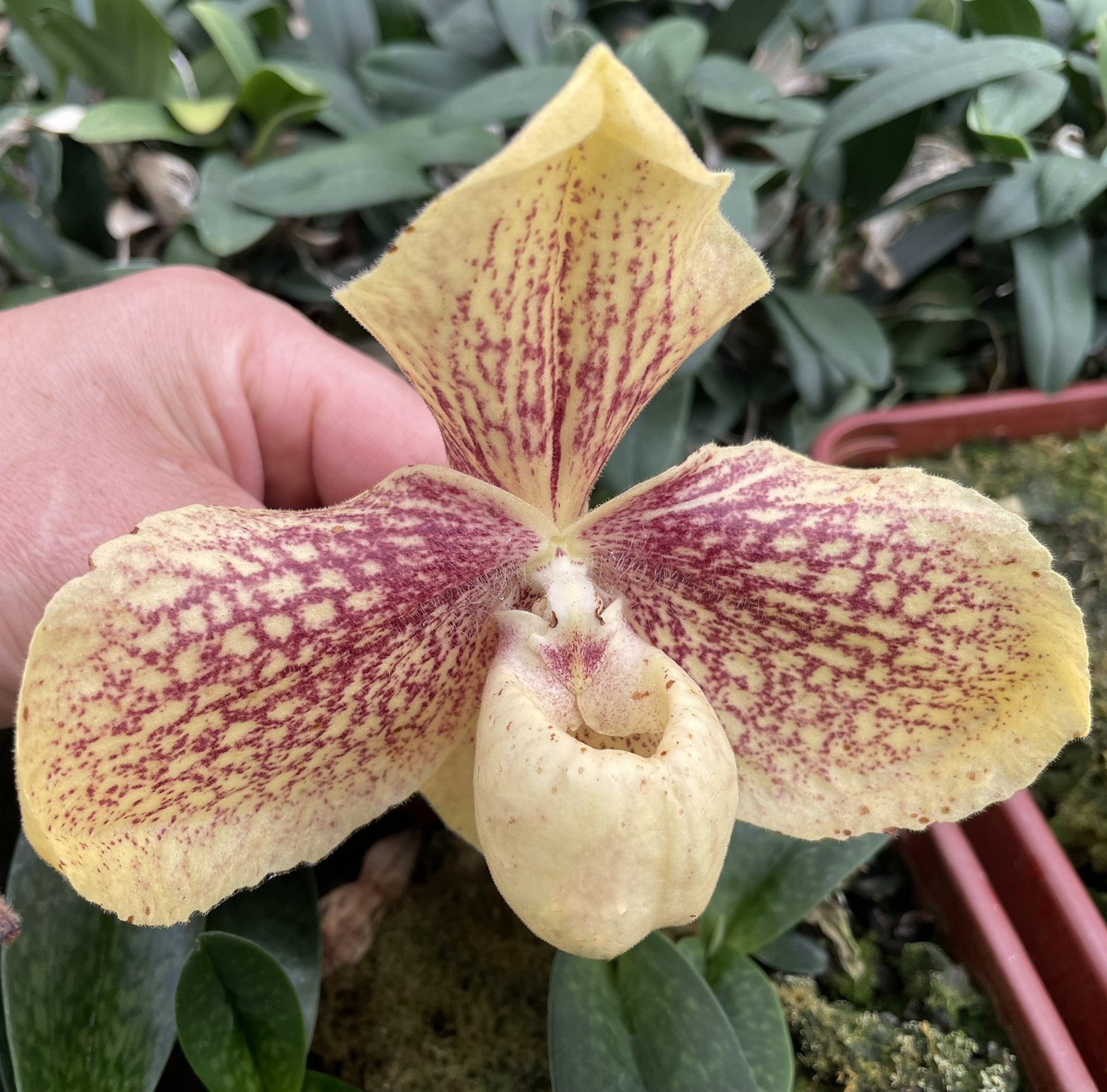 Paphiopedilum hangianum x leucochillum