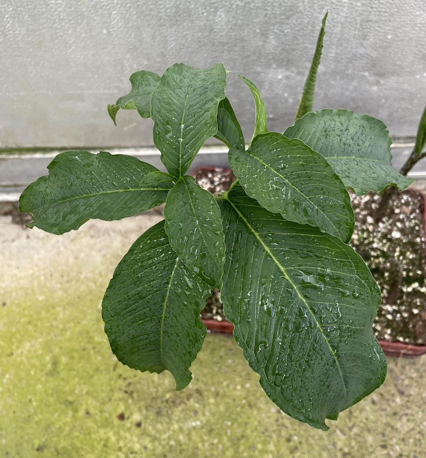 Sie erhalten im Winterhalbjahr eine lose Knolle mit passendem Topf und Substrat zum selber Pflanzen. Die Knolle sollte in etwa so tief eingetopft werden, wie sie hoch ist.. Ab dem Austrieb im Frühjahr dauerhaft feucht halten und regelmäßig relativ stark düngen. Sobald im Herbst das Laub eingezogen wird, kann man das Substrat weitestgehend trocken halten. Allerdings sollte man, je nach Raumtemperatur und Austrocknungsgrad des Substrates, auch über das Winterhalbjahr ab und zu ein klein wenig Wasser geben, um einem zu starken Eintrocknen der Knollen - vor allem bei Jungpflanzen - zuvor zu kommen. Im Zweifel halten Sie das Substrat aber lieber zu trocken. Muss die Knolle im Frühjahr sowieso in einen größeren Topf gepflanzt, oder das Substrat erneuert werden, können Sie diese ab dem Herbst auch ohne Substrat kühl und trocken lagern.