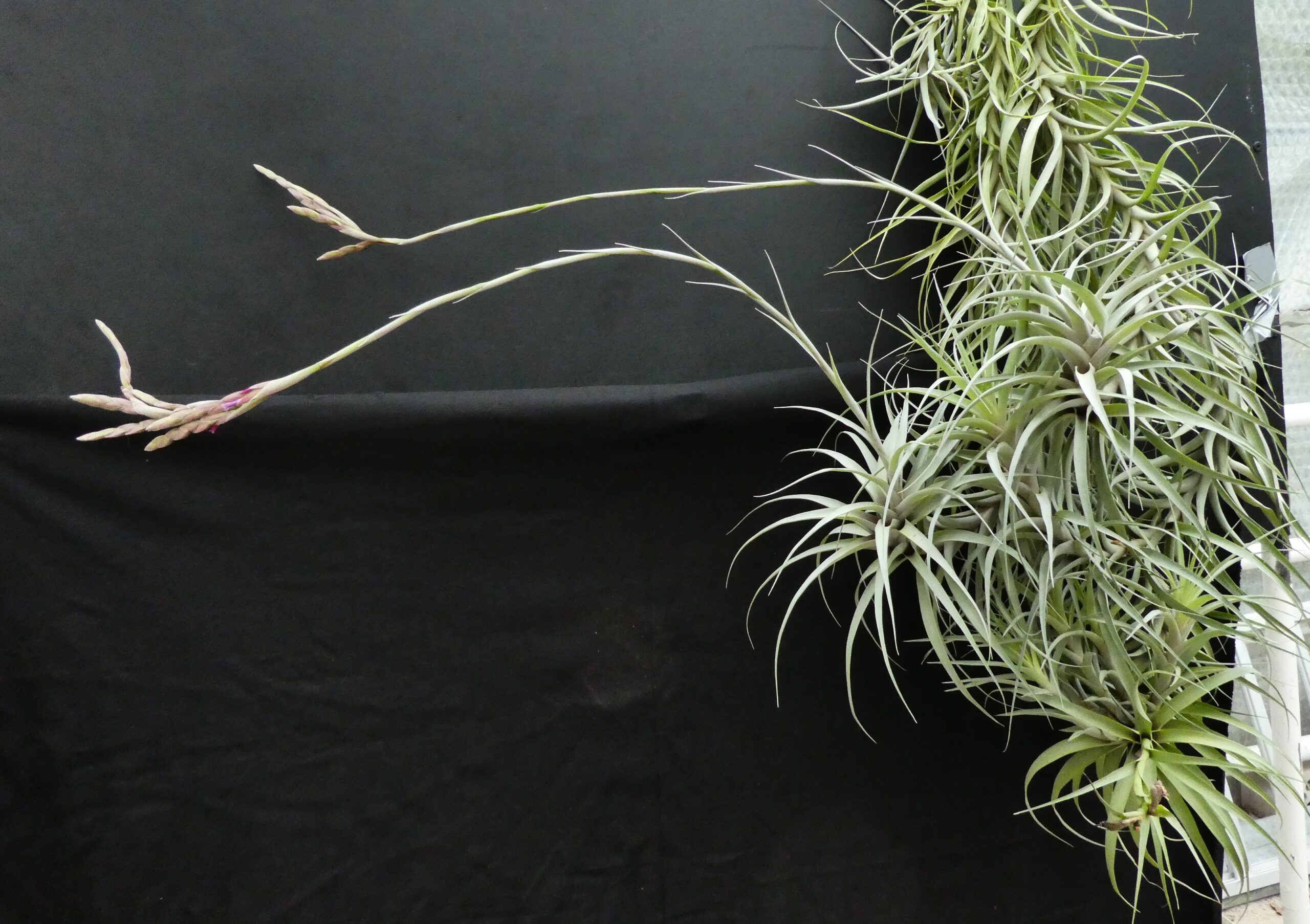 U-förmig aufwärts. Bricht so ein Trieb irgendwann ab, bildet er an der Bruchstelle einige neue Kindel.