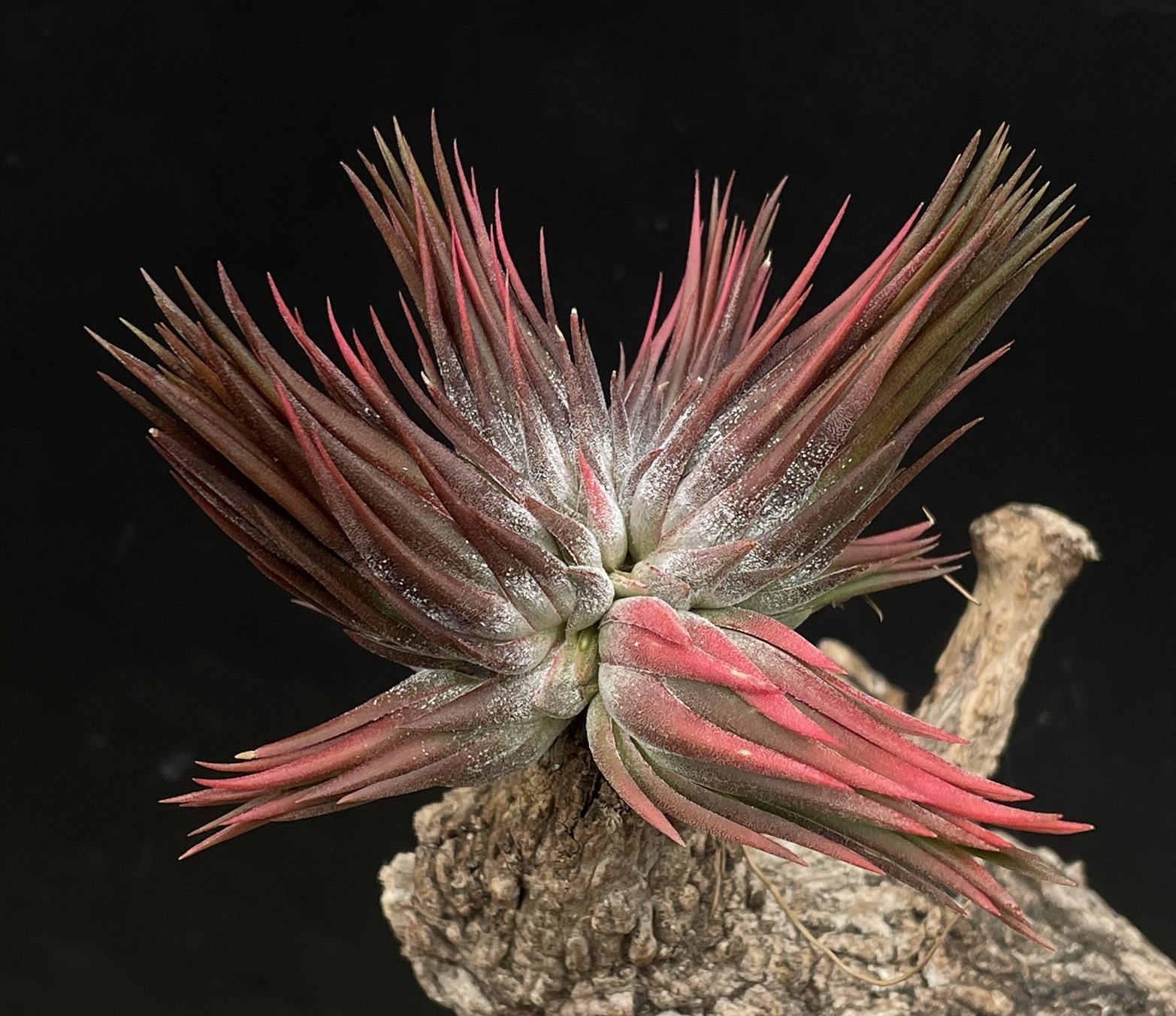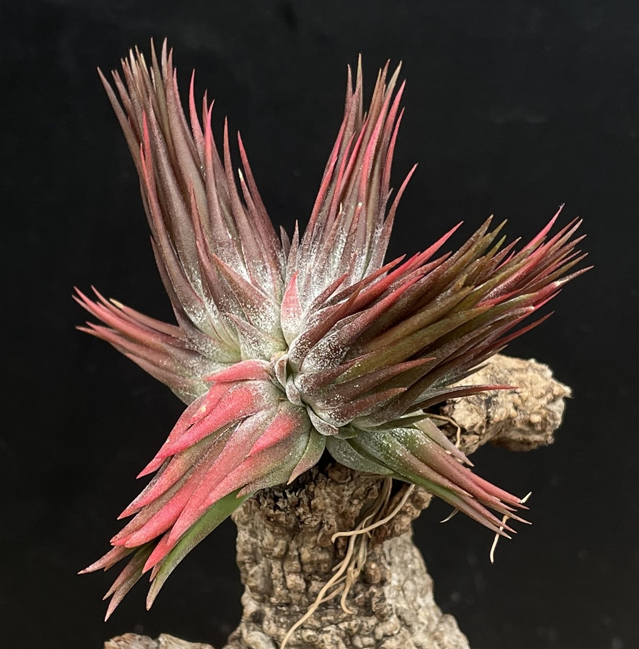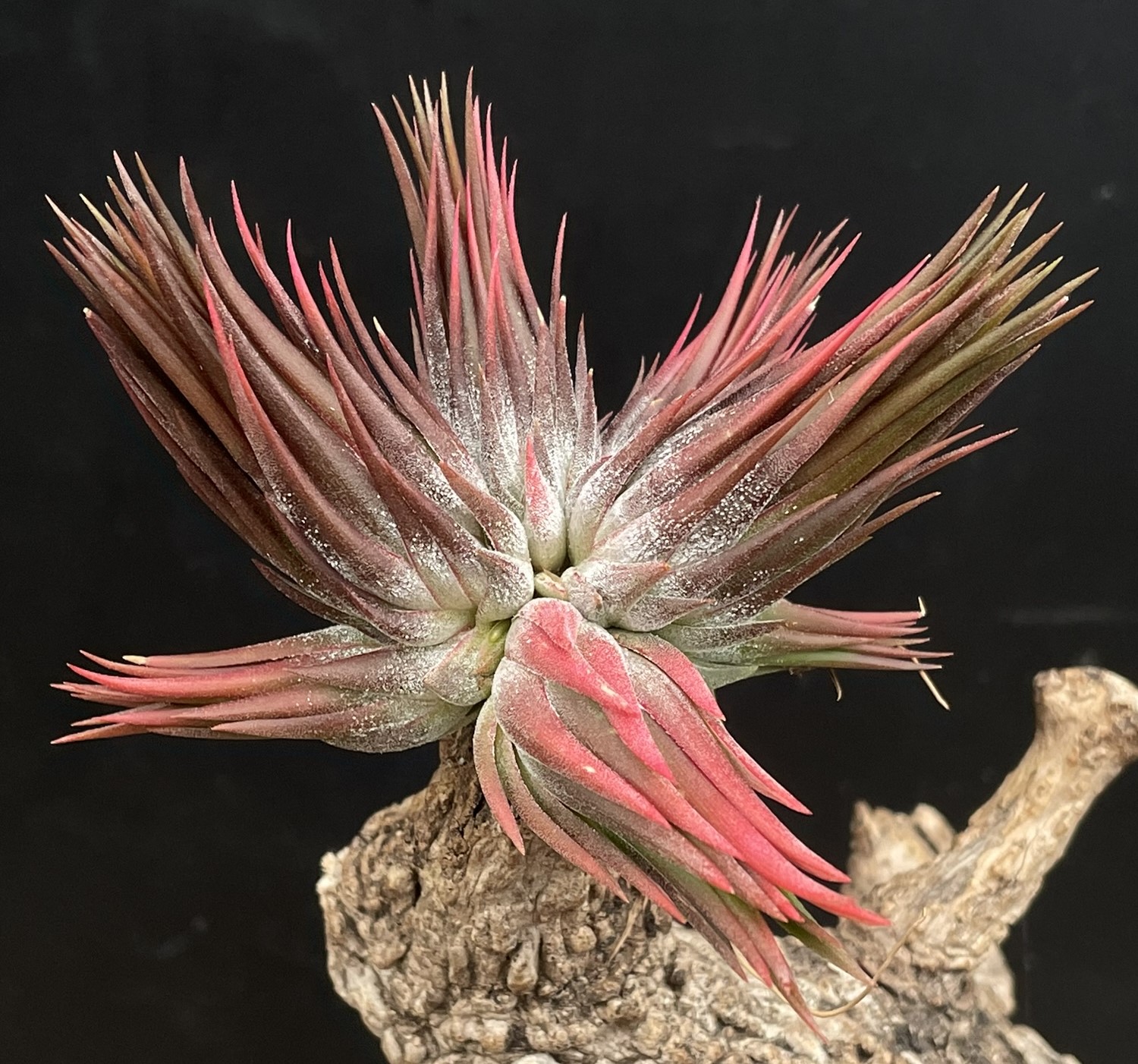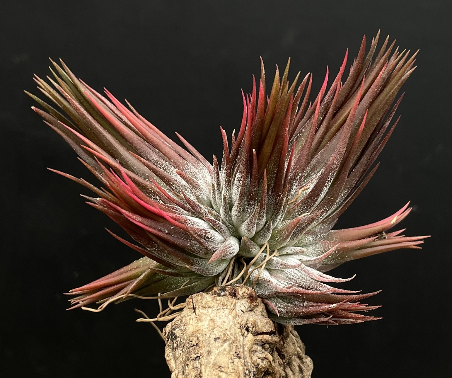 Eine aussergewöhliche Selektion aus unseren Tillandsia ionantha Haselnuss Sämlingen. Eng geschlossene Blätter und eine dunkel braun rote Färbung.